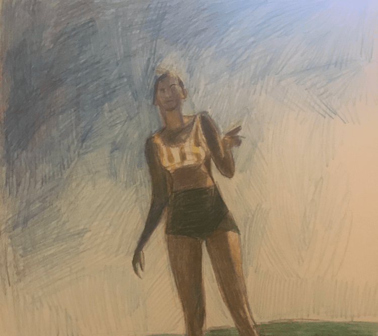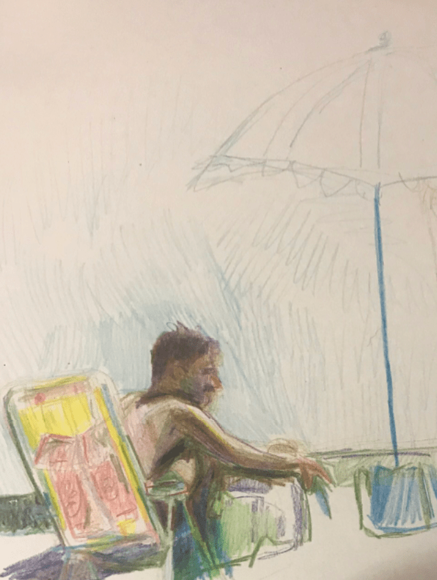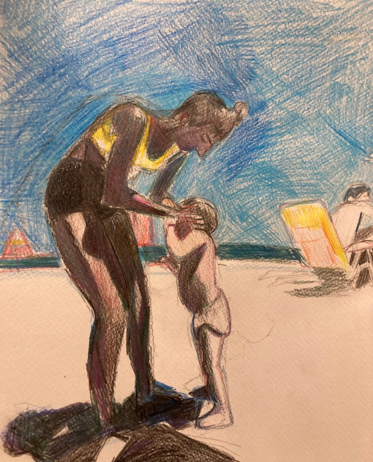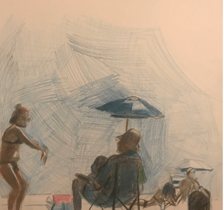 rockaway beach (2020) Alice, 10.5×11 inc., colored pencil on paper Alice & Harry, 9x 13.5 inch, colored pencil on paper Friends at Rockaway, 10×11 inch., colored pencil on paper