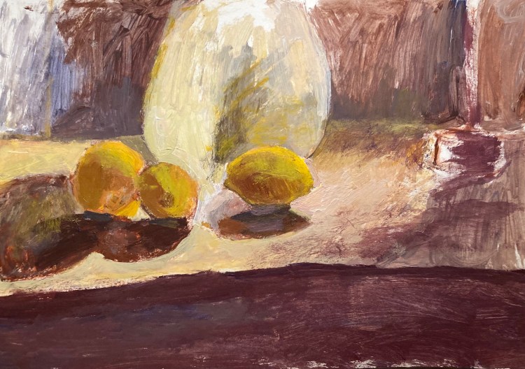 still life paintings (2020-2021) Lemon Coven #1, 18×12 in., acyrlic on paper Lemon Coven #2, 18×12 in., acyrlic on paper